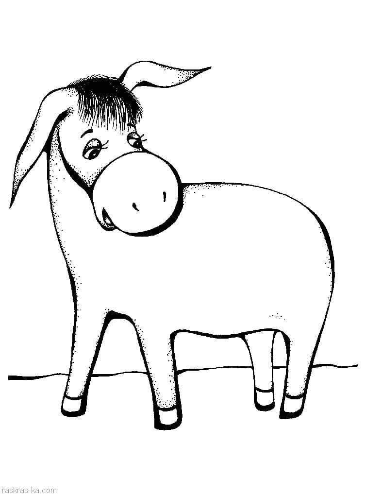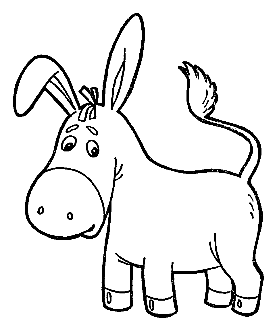 Осел, принадлежащий к семейству лошадей Equidae и происходящий от африканского дикого осла. Известно, что он использовался в качестве вьючного животного с 4000 года до нашей эры. Средний осел стоит 101,6 см в плече, но разные породы сильно различаются. По окрасу осел колеблется от белого до серого или черного и обычно имеет темную полосу от гривы до хвоста и поперечную полосу на плечах. Грива короткая и прямая, а хвост с длинными волосками только на конце больше похож на коровий, чем на лошадиный. Очень длинные уши темные у основания и кончика. Несмотря на то, что они медленнее лошадей, ослы уверенно передвигаются и могут нести тяжелые грузы по пересеченной местности. На нашем сайте Вы совершенно бесплатно можете скачать и распечатать раскраску осел в хорошем качестве.