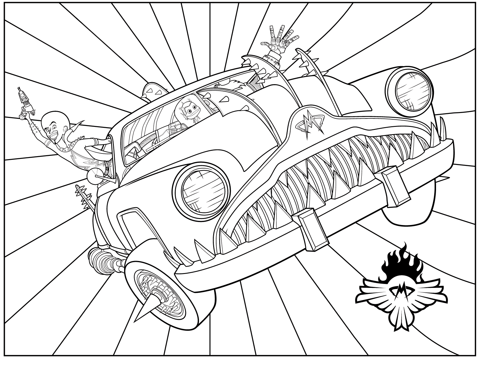 Раскраска: Автомобиль супер героя — на этой станице Вы можете скачать в виде картинки или документа .pdf раскраску "Автомобиль супер героя" абсолютно бесплатно, а также распечатать на листе формата А4.