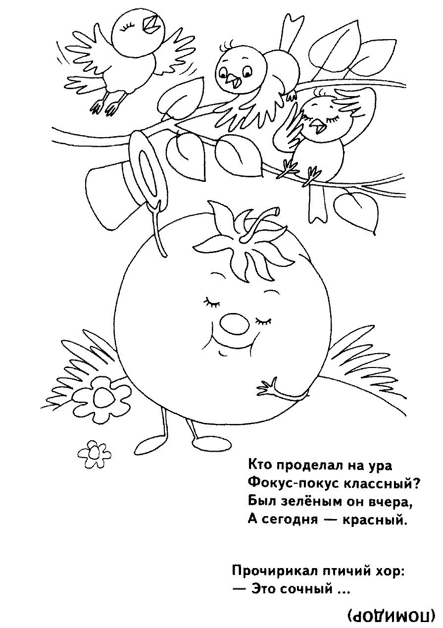 Раскраска: Загадка помидор — на этой станице Вы можете скачать в виде картинки или документа .pdf раскраску "Загадка помидор" абсолютно бесплатно, а также распечатать на листе формата А4.